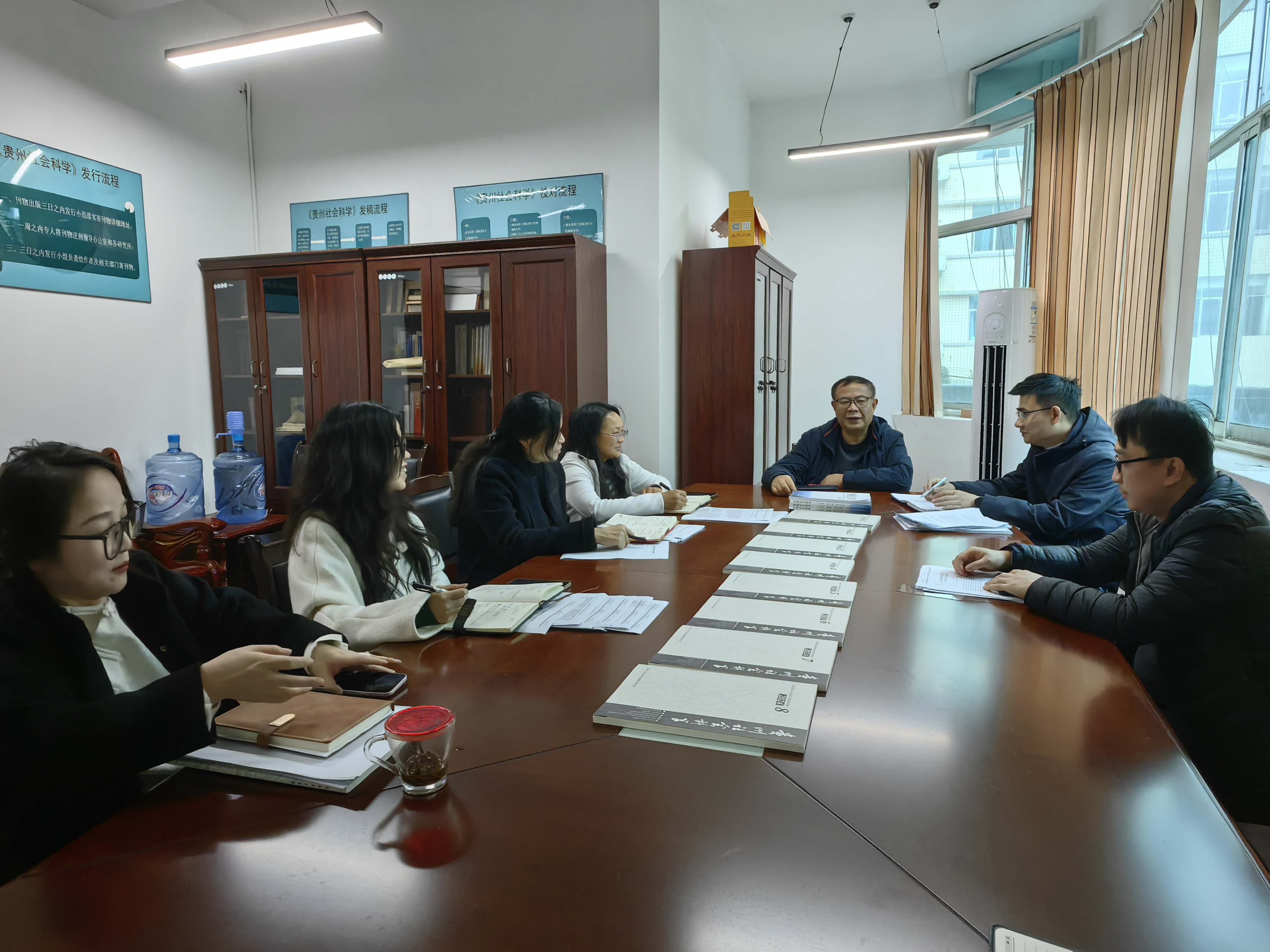 2025年11月3日上午,《贵州社会科学》编辑部党支部组织召开专题学习会,传达学习党的二十届四中全会精神并开展交流研讨。会议由编辑部党支部副书记王俊主持,编辑部全体人员参加。