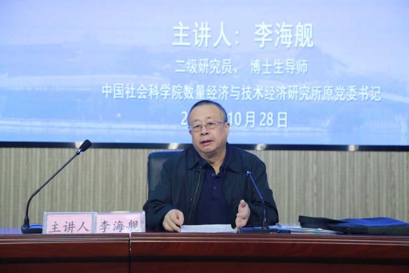 10月28日上午,贵州省社会科学院在院学术报告厅成功举办“甲秀智库论坛”第十二期。本期讲座邀请中国社会科学院数量经济与技术经济研究所原党委书记、博士生导师、二级研究员李海舰主讲,以“数据要素价值化研究—兼论全国一体化数据市场建设”为主题进行了学术报告。院党委书记黄朝椿研究员主持,全院科研人员参加。