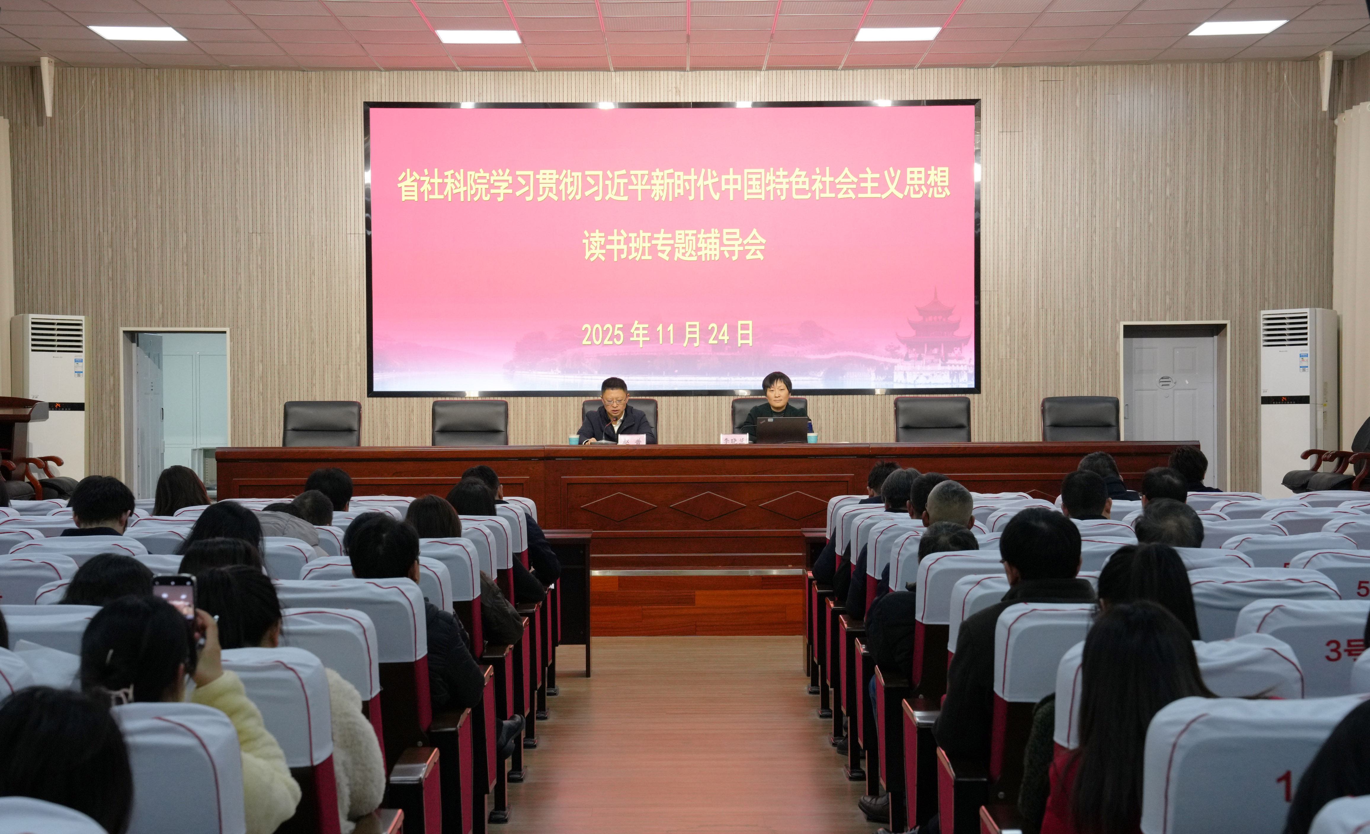 2025年11月24日,贵州省社会科学院举办学习贯彻习近平新时代中国特色社会主义思想读书班,邀请中共贵州省委党校马克思主义学院院长李晓兰博士,就深入学习领会党的二十届四中全会精神作专题辅导报告,院党委常委、副院长赵普主持,院全体干部职工参加。