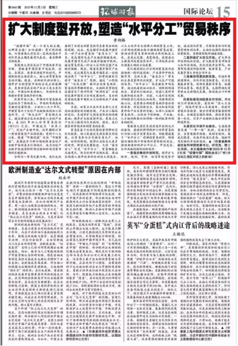 12月3日,《环球时报》刊发我院党委书记黄朝椿2025年12月2日在“读懂中国”国际会议(广州)分论坛之湾区对话上的致词《扩大制度型开放,塑造“水平分工”贸易秩序》,下面我们一起来看看吧!