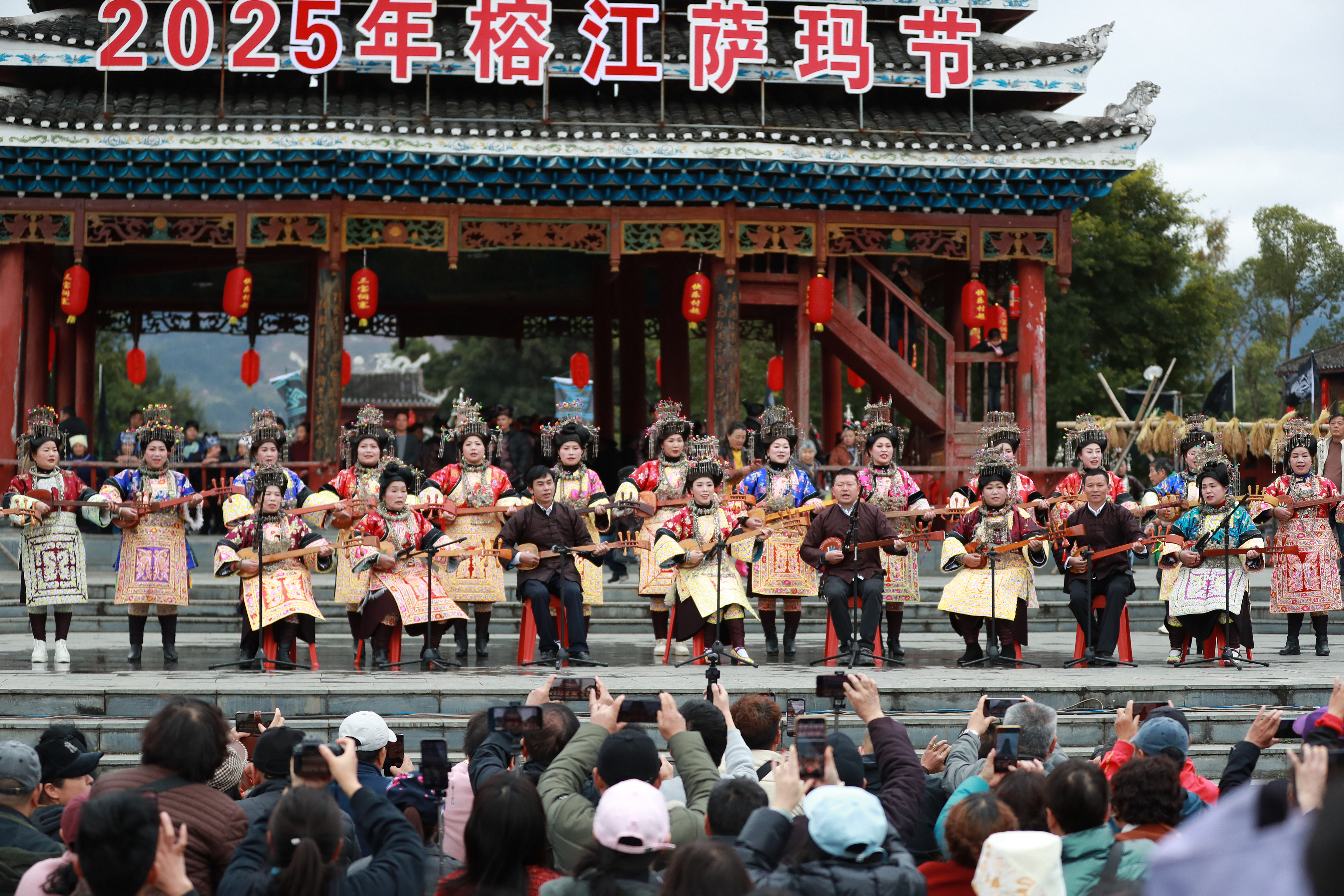 2025年3月15日,黔东南州榕江县侗族同胞在“萨玛节”活动中演唱七十二寨侗族琵琶歌。杨文舒 摄